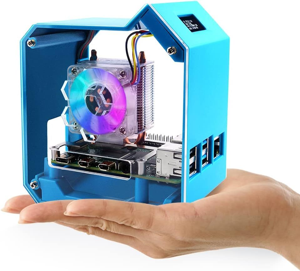GeeekPi Mini Tower Kit for Raspberry Pi 5, Pi 5 Case with Ice Tower Cooler, 0.96'' OLED Module, RGB Cooling Fan,GPIO 1 to 2 Expansion Board for Raspberry Pi 5