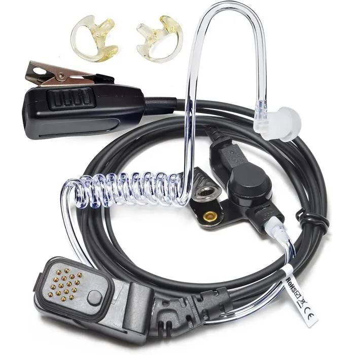 UAYESOK Oreillette Radio Talkie Walkie Casque avec Microphone PTT 16 Broches pour Matra EADS Cassidiam, Jupiter TPH-700 TETRAPOL Gendarmerie Discreteur Kit avec Tube Air et Embouts Ecouteurs