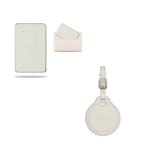 SATECHI Bundle FindAll Traceur GPS pour Bagage avec Apple Find My Recharge sans Fil Alerte Sonore Puissante et FindAll Wallet Tracker Carte Localisation Portefeuille (Beige)