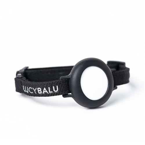 LucyBalu® Collier AirTag pour Chat| Collier AirTag en Nylon résistant | Collier Anti étranglement | Traceur GPS Chat | Collier Chat Compatible avec Apple AirTag | Taille réglable | Nylon | Noir