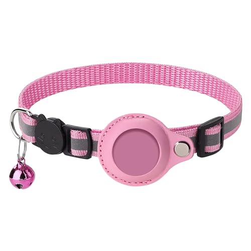 Collier Airtag pour Chat, Collier Chat Anti Étranglement Réglable avec Sangle Réfléchissant, Clochette, Support de Protection Compatible avec Apple AirTag, Rose, 1 Pièce (Traceur GPS Non Inclus)