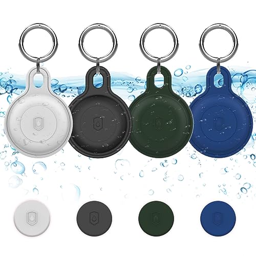 Obyllato Lot de 4 Supports Etanches Airtag, Compatible avec Apple Air Tag, Housse Protectrice en Silicone pour Traceur GPS