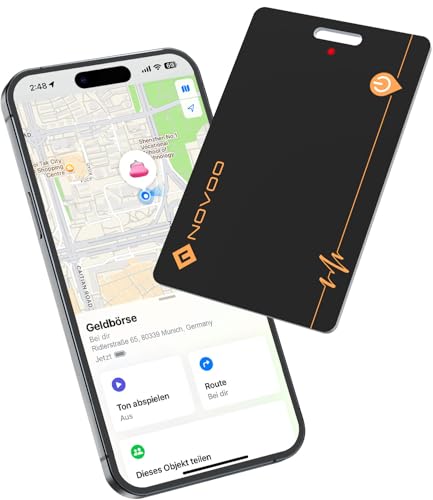 NOVOO Carte Tracker Portefeuille Rechargeable, Traceur de Bagages Ultra-Mince, Charge sans Fil, Carte de Suivi Bluetooth (Uniquement pour iOS, Apple Find My), Étiquette GPS Anti-Perte pour Passeports
