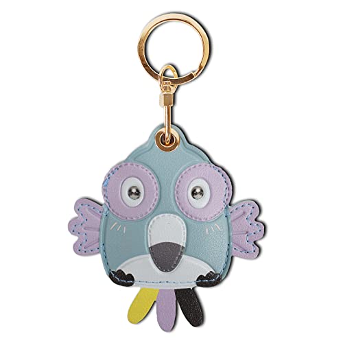 Étui porte-clés en cuir compatible avec Apple AirTag, GPS Airtag Keychain Finder Tracker avec porte-clés, coque de protection anti-rayures pour clés, portefeuille (perroquet bleu)
