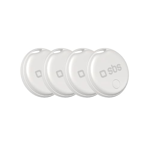 SBS Track My Dot Kit, 4 x Localisateurs compatibles avec Apple Localiser (iOS), Trouve-Objets pour Clés, 60dB, Prêts à l'emploi avec Pile CR2032 Incluse, avec Trou pour Porte-clés, Blanc