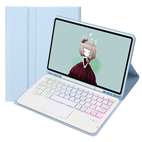 VLEAQC Étui avec Clavier pour Samsung Galaxy Tab A7 10,4" 2022/2020 (SM-T500/T503/T505/T507/T509), Clavier trackpad Bluetooth, rétroéclairage 3 Couleurs, étui de Protection léger,Bleu