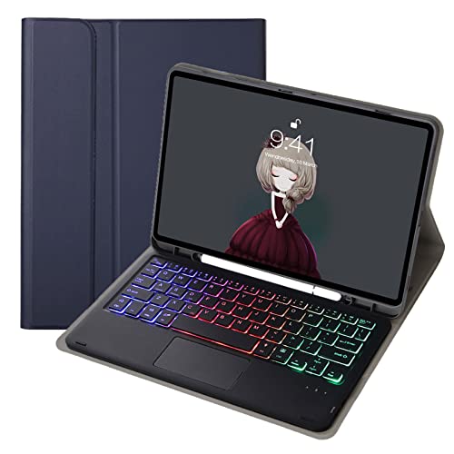 VLEAQC Étui avec Clavier pour Samsung Galaxy Tab A7 10,4" 2022/2020 (SM-T500/T503/T505/T507/T509), Clavier trackpad Bluetooth, rétroéclairage 3 Couleurs, étui de Protection léger,Dark Blue