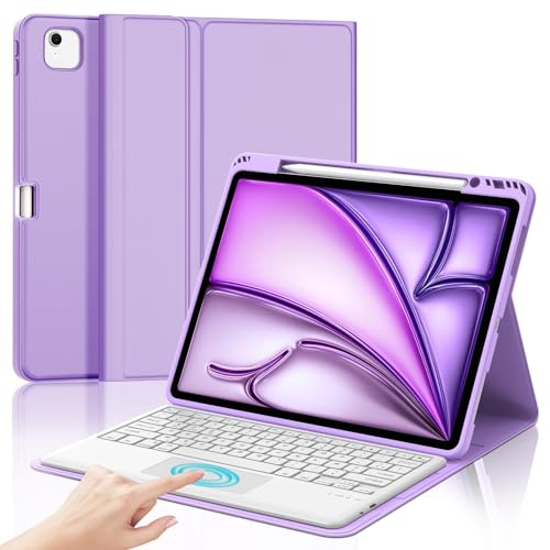Clavier iPad Air 13 Pouces (M2 2024/M3 2025) avec Pavé Tactile, rétroéclairé 7 Couleurs AZERTY Français Keyboard Coque, Étui Clavier Trackpad Détachable Bluetooth pour iPad Air 13, Pourpre lavande