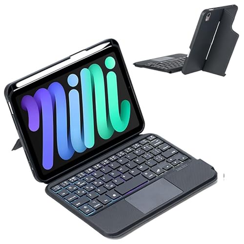 QYiiD Étui clavier pour iPad Mini 6 2021 (8,3 pouces), béquille magnétique amovible en silicone+étui ABS avec clavier trackpad rétroéclairé Bluetooth pour iPad Mini 6ème génération avec porte-crayon