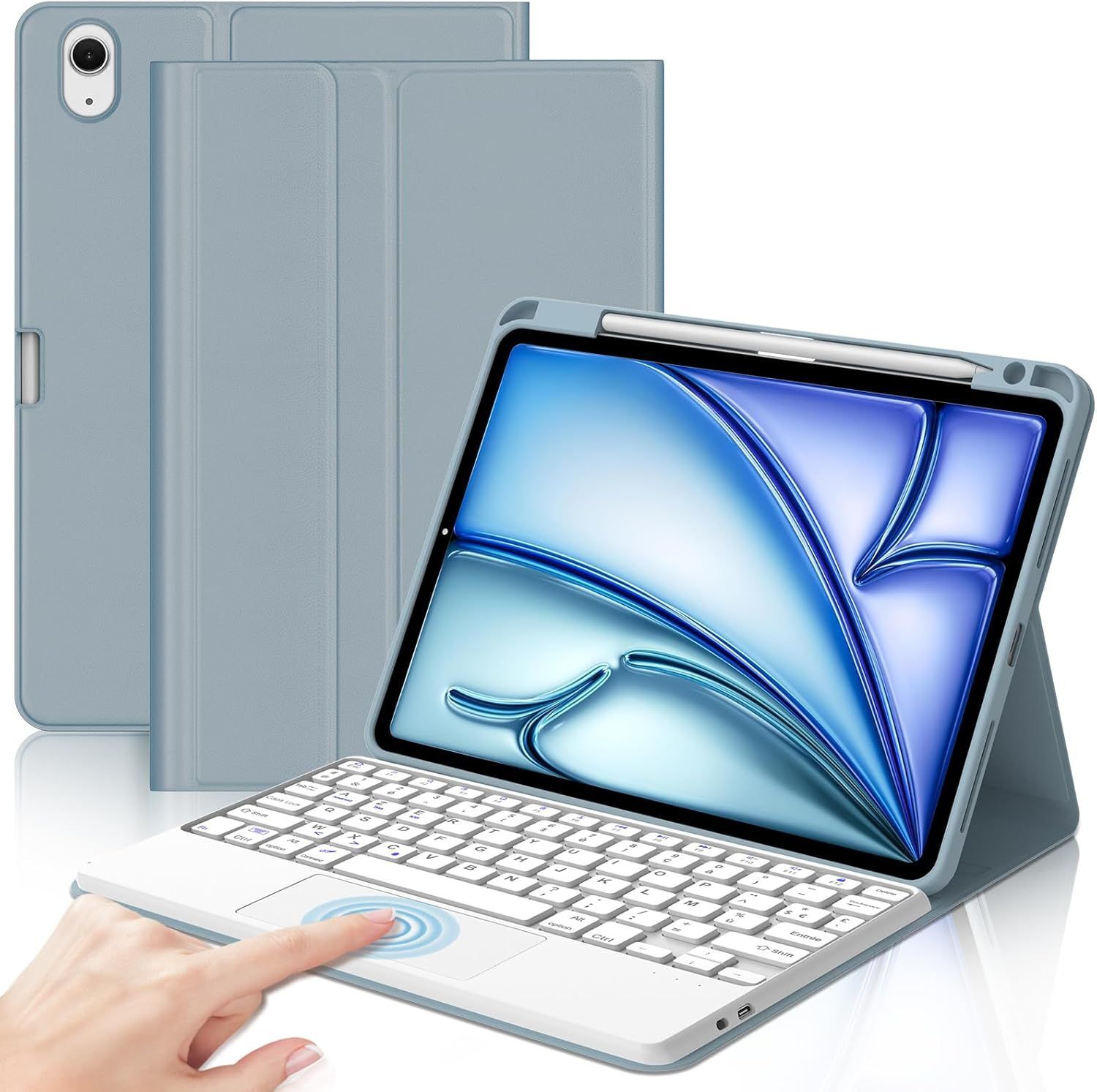 Clavier Ipad Air 11 Pouces (M3 2025/M2 2024) Avec Pavé Tactile, Étui Coque Clavier Trackpad Azerty Français Bluetooth Détachable Sans Fil Bluetooth Pour Ipad Air 11, Bleu Gris[Z249]