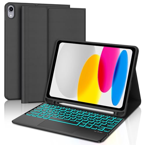 IVEOPPE Clavier iPad 10/11ème Generation (10.9 Pouces 2022/11 Pouces A16 2025) avec Trackpad, Rétroéclairage 7 Couleurs, Étui Clavier Touchpad AZERTY sans Fil Bluetooth pour iPad 10eme/11eme, Noir