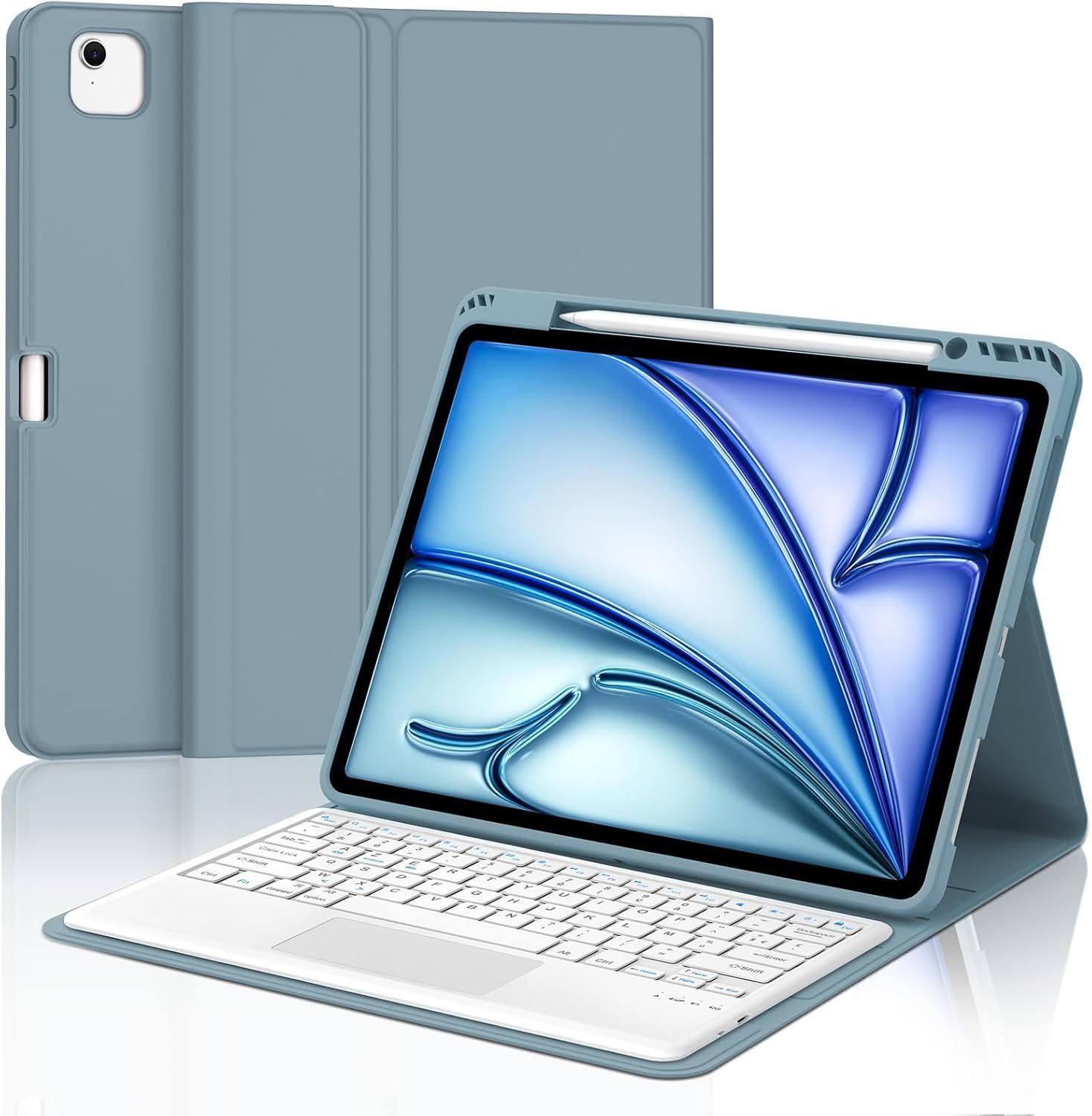 IVEOPPE Clavier iPad Air 13 Pouces (M2 2024/M3 2025) avec Pavé Tactile, Touchpad AZERTY Français Keyboard Coque, Étui Clavier Trackpad Détachable Bluetooth pour iPad Air 13, Bleu-Gris