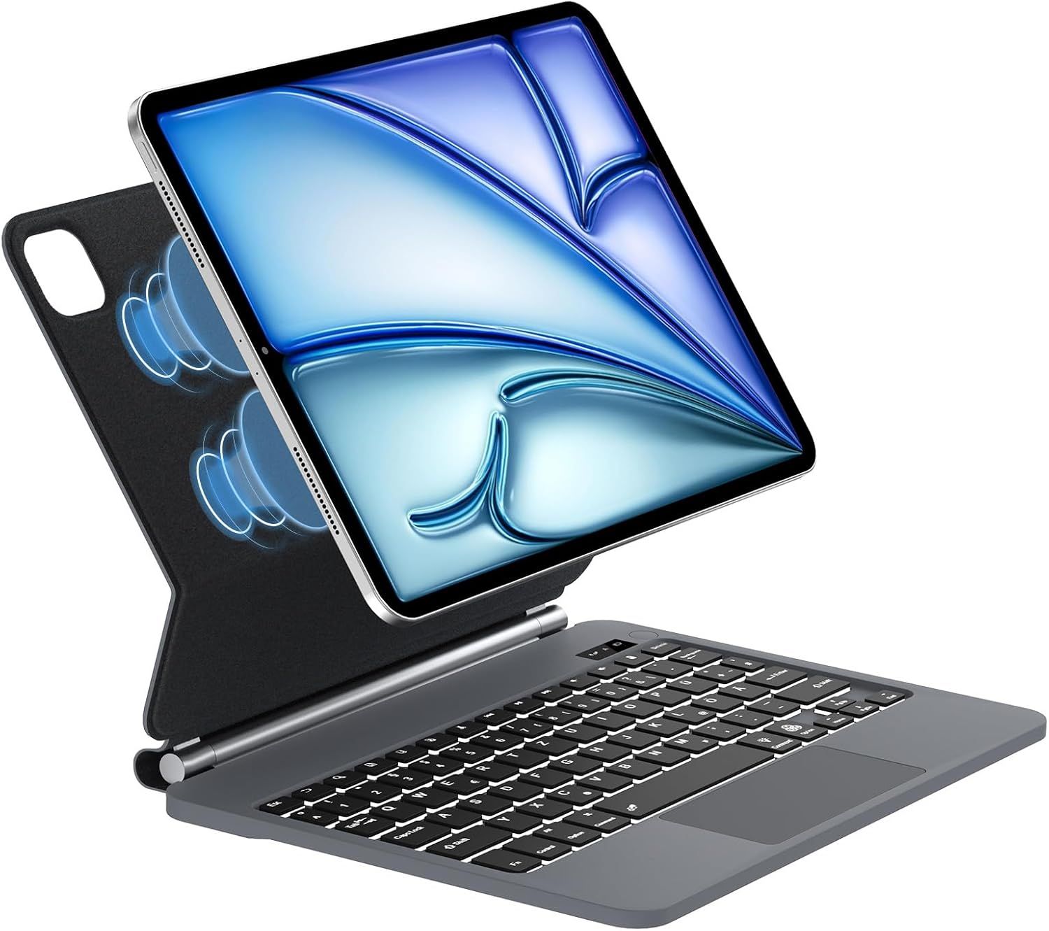 JADEMALL Clavier pour iPad Air 11 Pouces M3 2025/M2 2024, Magic Keyboard pour iPad Air 11" M2/M3/ Air 5/4 Gen 10.9" avec Trackpad Multi-Touch Bluetooth Clavier Rétroéclairé, AZERTY, Gris