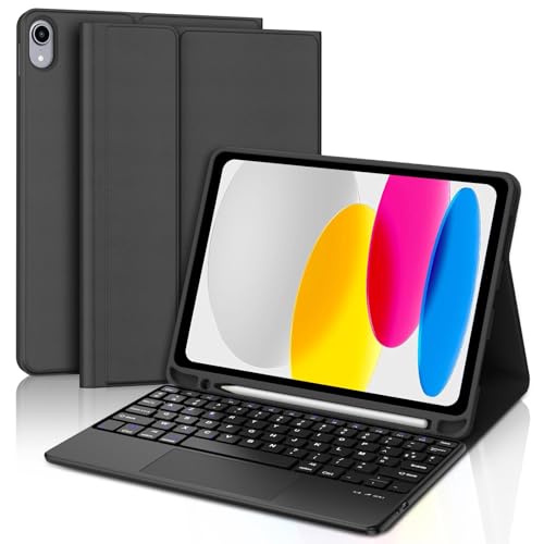 Rii Étui Clavier pour iPad 10,9 Pouces 2021 (10ème génération), Étui-Clavier Bluetooth, Magnétique avec Trackpad, Rétroéclairage Bluetooth Clavier AZERTY pour iPad 10eme - Noir