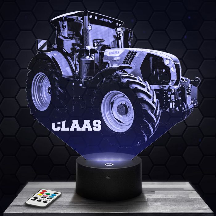 Lampe 3d _ Tracteur Claas - Jouet Miniature Cadeau Tracteur Claas - Veilleuse Led Tactile avec socle au choix et télécommande TOP