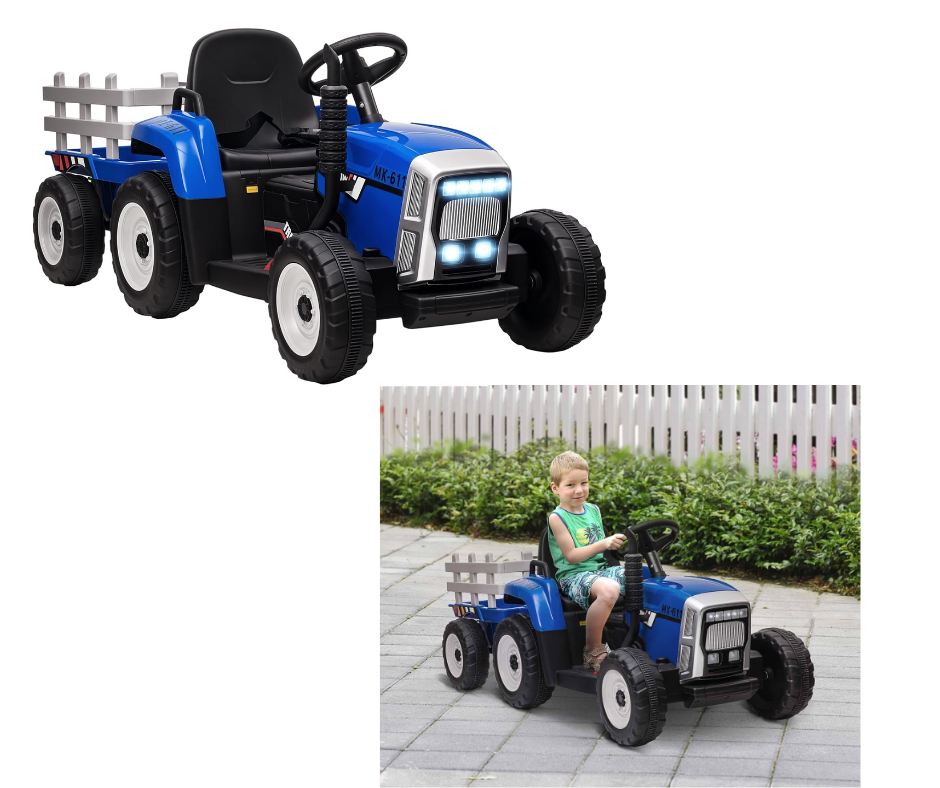 Tracteur Électrique Enfant 12V Remorque Bleu 3 à 6 ans 136,5x50x52,5 cm Jouet