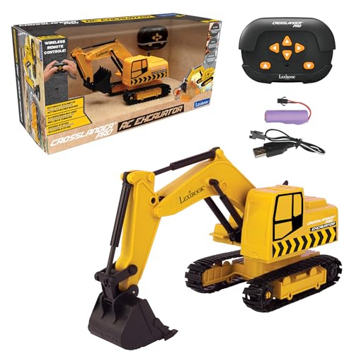Lexibook, Crosslander® Pro, RC Excavator, Tractopelle télécommandé, Pelle Automatique, Tapis de Jeu, moules à Sable, 2 camions et Un Pont en Carton Inclus, Rechargeable, RCP30