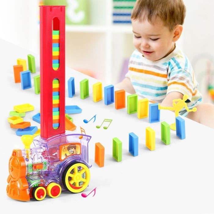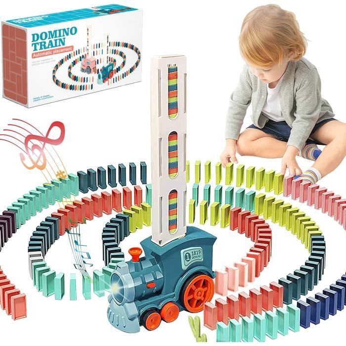 Train Électrique Domino avec 60 Blocs Son et Éclairage Jouet pour Enfants