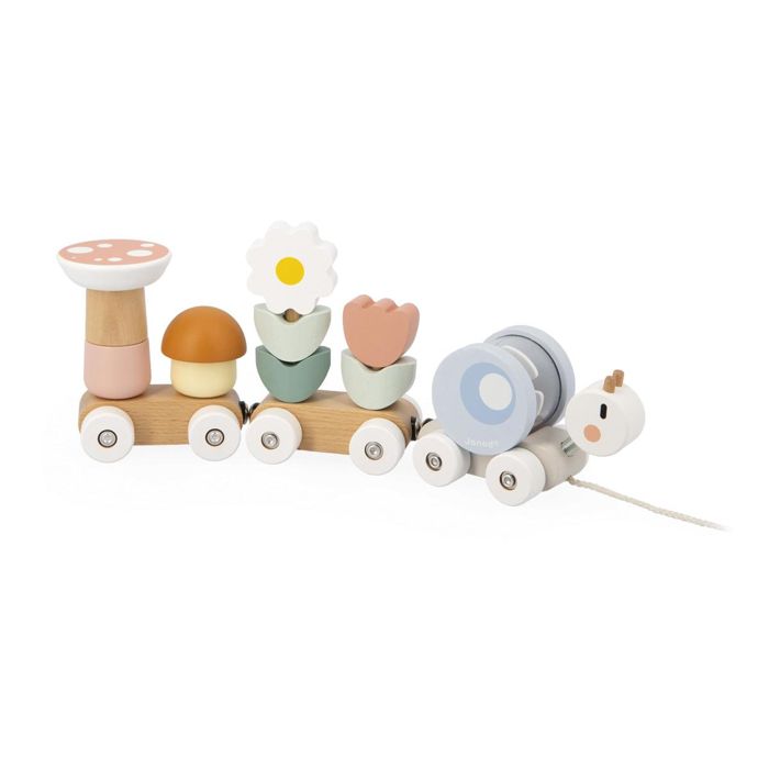 Petit train escargot à tirer - formes à empiler et hochet amovible