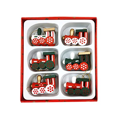 Uposao Suspensions pour Sapin De Noël, 6 Pcs Arbre De Noël Décoration Pendentifs Decoration Noel en Bois Figurines en Bois Décoration Mini Train de Noël Déco Noël Pendentif Déco