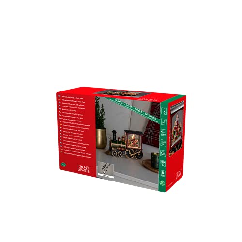 Konstsmide Boule à neige en train avec Père Noël et lutins - Minuterie de 5 heures - Fonctionne avec 3 piles AA 1,5 V (non incluses) - Lanterne de Noël