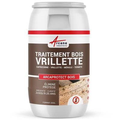 Arcane Industries Traitement Bois Anti Vrillette du bois : des bois, charpente, ossature intérieur ou extérieur-200 L