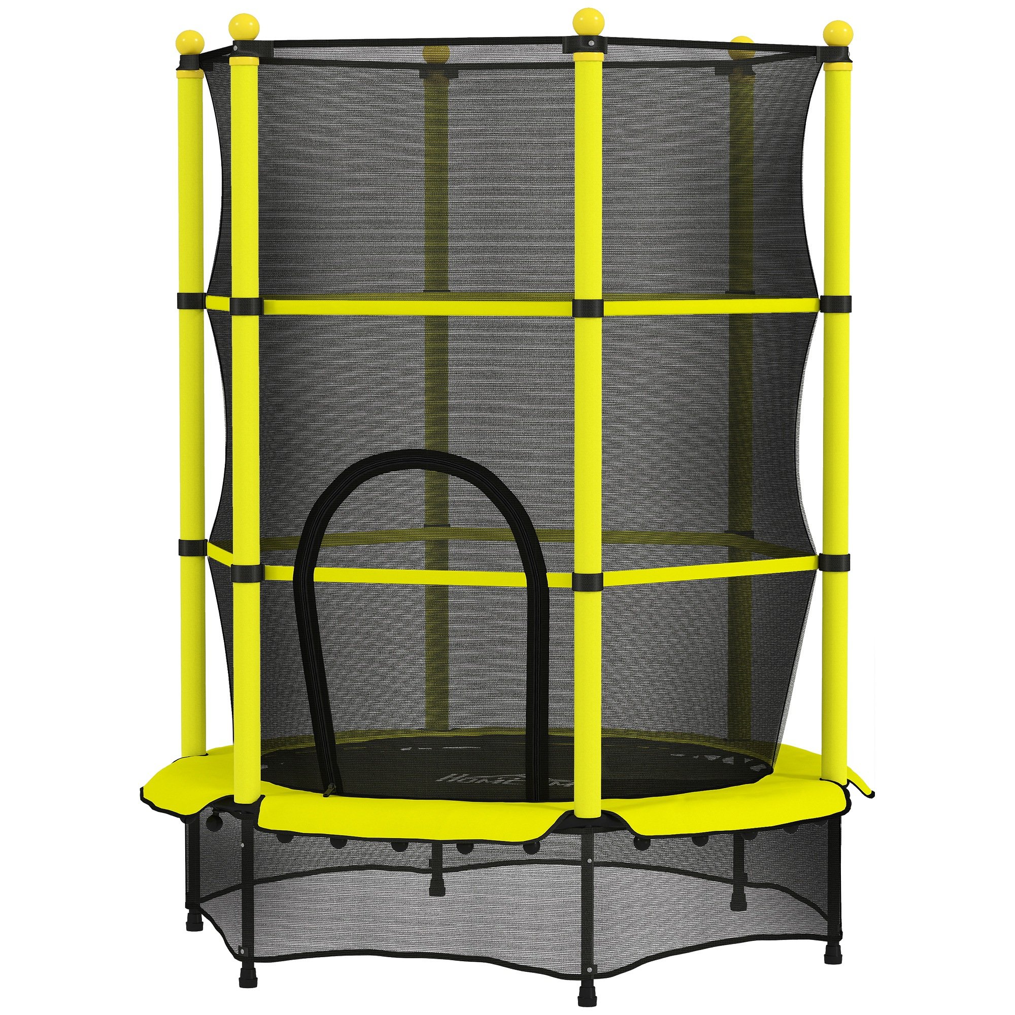 HOMCOM Trampoline enfant Ø140 cm pour 3-10 ans avec filet de sécurité Charge 50 kg pour intérieur extérieur Jaune