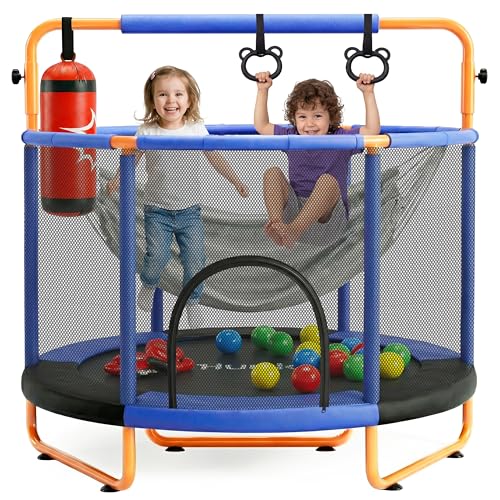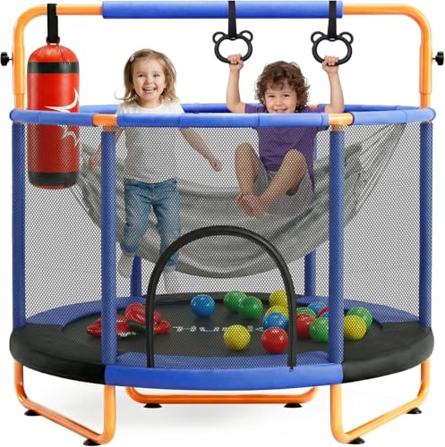 Hurtle Trampoline 55" pour Enfants avec Filet de sécurité – Capacité : 440 lbs, Trampoline intérieur/extérieur pour Tout-Petits avec Barre de Gymnastique, balançoire, Sac de Frappe et Anneaux