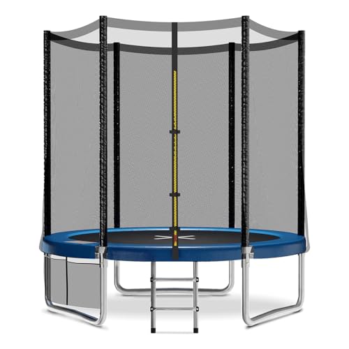 JUMMICO Trampoline extérieur Ø 183/228/305/366/427 cm, Trampoline de Jardin pour Enfants avec échelle et Poche latérale (Bleu, 183 cm)