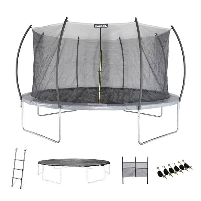 Sweeek Trampoline 370cm - Saturne XXL Gris avec filet de protection. échelle. bâche. pour chaussures. kit d'ancrage. trampoline