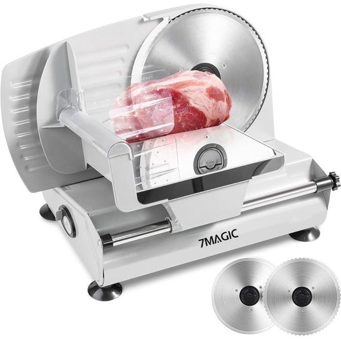 7MAGIC SL518 Trancheuse Electrique - 200W - 2 x 19CM Lames dentelée et Lisse - Pour viandes Jambon et Saucisson - détachable