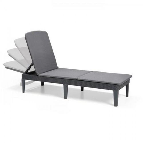 Transat Bain de soleil - Allibert by KETER JAIPUR - en résine imitation rotin tressé - gris graphite - dossier réglable avec cous