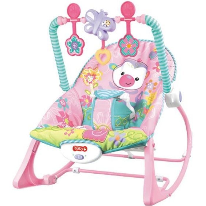 Costway 3 en 1 transat évolutif pour bébé 0-36 mois jusqu’à 18kg, chaise/siège à bascule avec 2 modes de vibrations, balancelle musical apaisant à 3 positions avec arche à jouet amovible rose