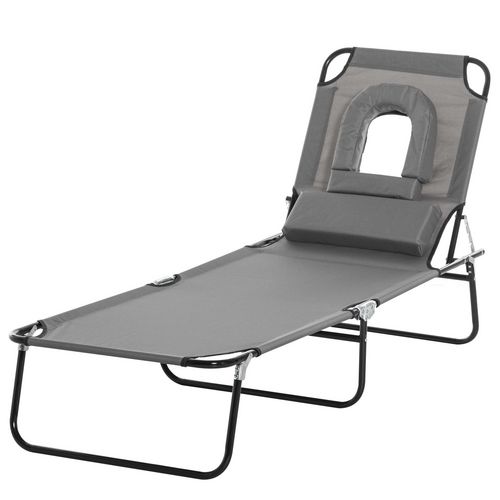 Outsunny Bain transat de soleil Gris pliable dossier multipositions réglable