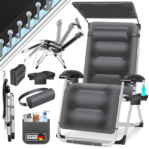 KESSER® Transat XXL - pliable, résistant aux intempéries, capacité 200 kg, revêtement ergonomique, dossier réglable, porte-gobelets et coussin pour les bras, avec auvent - Anthracite