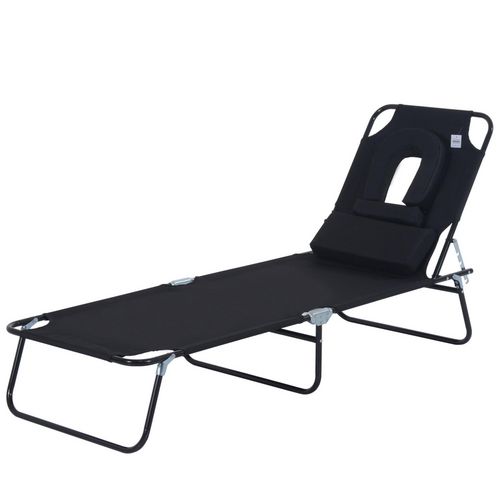 Outsunny Bain de Soleil Pliable transat inclinable 7 Positions Chaise Longue Grand Confort avec Matelas + accoudoirs métal époxy textilène Polyester Noir