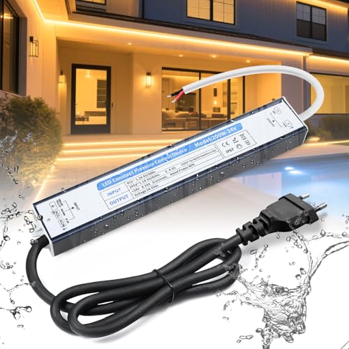 YOODI Transformateur 220V 24V LED 200W Ultra Fin LED Driver Alimentation 24V 8,3A Imperméable IP44 LED Transfo AC à DC Alimentation Tension Constante Adaptateur Convertisseur pour LED Exterieur