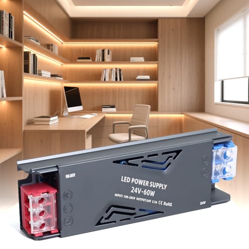 SUCIKORIO LED Transformateur 220V 24V 60W 2,5A, Alimentation LED Driver 24V 60W Ultra Fin LEDs Transfo Alimentation à Découpage Convertisseur De Tension AC à DC Transfo Pour Ruban LEDs Intérieur