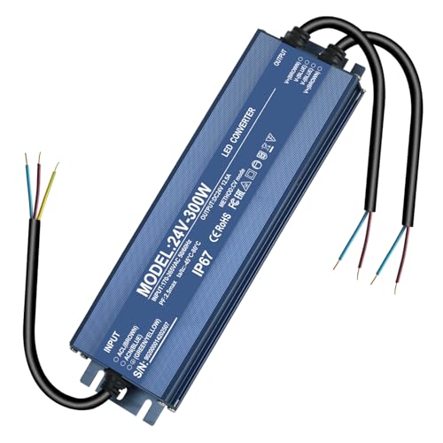 alimentation 24v 12.5A, Transformateur 220V 24V 300W, led driver 24v étanche IP67, Transfo AC à DC, convertisseur 220v 24v, pour CCTV MR16 G4 MR11 GU5.3 Ampoule et Bande Lumineuse LED, Non Dimmable