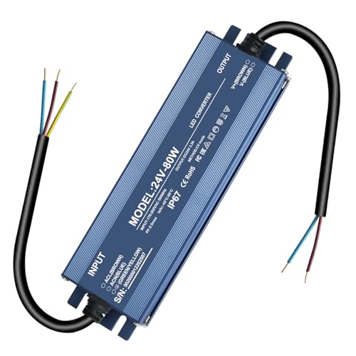 alimentation 24v 3.33A, Transformateur 220V 24V 80W, led driver 24v étanche IP67, Transfo AC à DC, convertisseur 220v 24v, pour CCTV MR16 G4 MR11 GU5.3 Ampoule et Bande Lumineuse LED, Non Dimmable