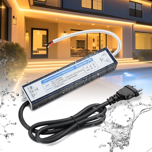 SUCIKORIO LED Transformateur 220V 12V 24W 2A Extérieur Etanche IP67, Alimentation LED Driver 12V 24W Ultra Fin LEDs Transfo Alimentation à Découpage Convertisseur De Tension AC à DC Transfo Pour LEDs