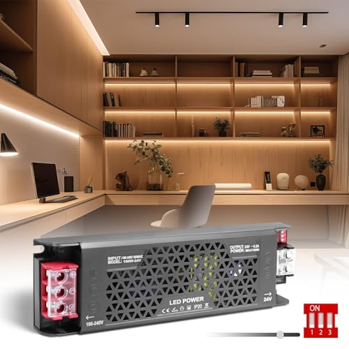 SUCIKORIO 24V 100W Alimentation LED Driver 220V 24V AC 100W 4,1A LED Transformateur Ultra Fin LEDs Transfo Alimentation à Découpage Convertisseur De Tension AC à DC Pour Ruban LEDs Intérieur