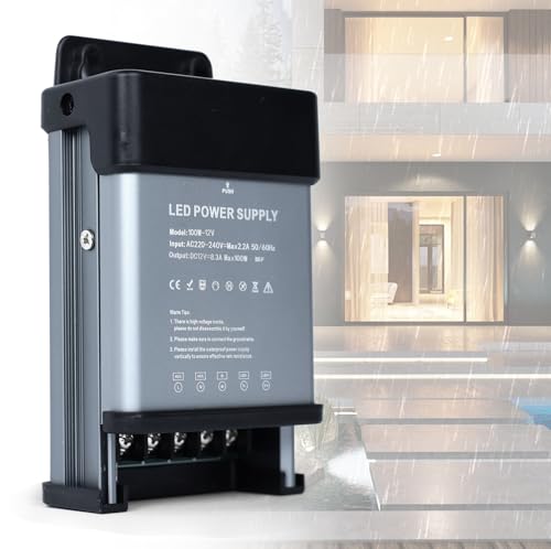 BRIMETI Transformateur 220V 12V LED Driver 100W Etanche IP67 Extérieur Transfo 8,3A Adaptateur Alimentation,220V AC à 12V DC Convertisseur,d'alimentation Basse Tension Transfo LED de Tension Constante