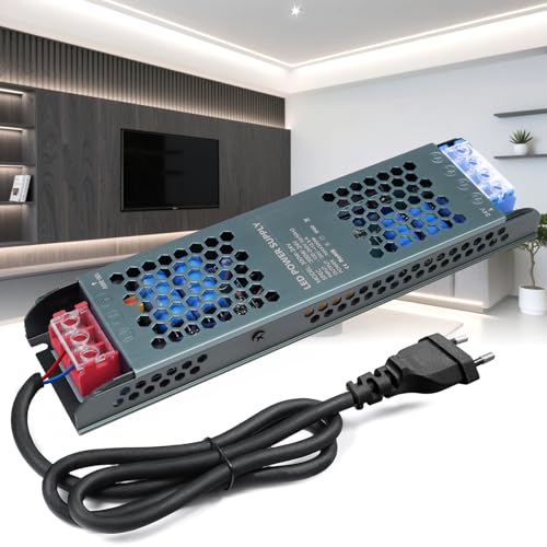 KSIBNW Transformateur 220V 24V 300W 12,5A LED Transfo avec Prise, Extra Fin Driver Adaptateur Alimentation 220V AC à 24V DC Adapter Constante Alimentation Basse Tension pour LED Bande Lumineuse