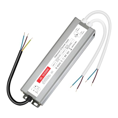 Transformateur 220V 12V LED 200W, alimentation 12v 200w 16.6A, led driver 12v étanche IP67, Transfo AC à DC, convertisseur 220v 12v, 12V200W pour G4, GU5.3, MR11, MR16, Bande LED, Non Dimmable