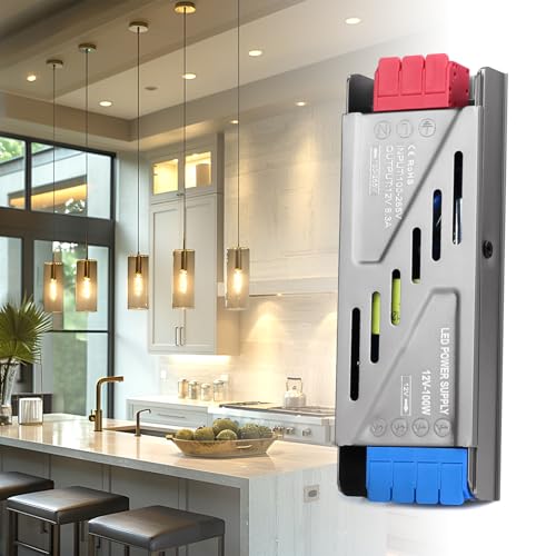 BRIMETI Transformateur 220V 12V Alimentation 100W 8.3A Ultra Mince Convertisseur 220V AC à 12V DC Adaptateur d'alimentation Basse Tension Transfo Constante Entrée LED Driver pour Ruban LED Bande