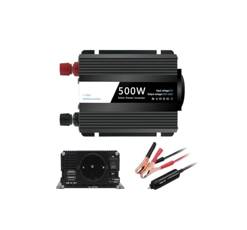 Convertisseur Onduleur Voiture 12V 220V Convertisseur Puissance 500W/1500W/2000W/2600W/3000W, Prise UE Automatique 12 Volts Transformateur Solaire V220 Onduleur(12V 220V 500W)