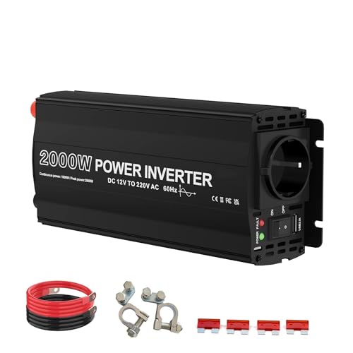 Convertisseur Onduleur Voiture 12V 220V Convertisseur Puissance 500W/1500W/2000W/2600W/3000W, Prise UE Automatique 12 Volts Transformateur Solaire V220 Onduleur(12V 220V 2000W)