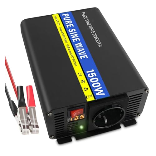 Onduleur Transformateur Onduleur Sinusoïdal Pur 2000W 12V vers 220V CA Prise Universelle pour Système Solaire Voiture Maison Camping-Car Protection Contre Les Surcharges Convertisseur(1500W)