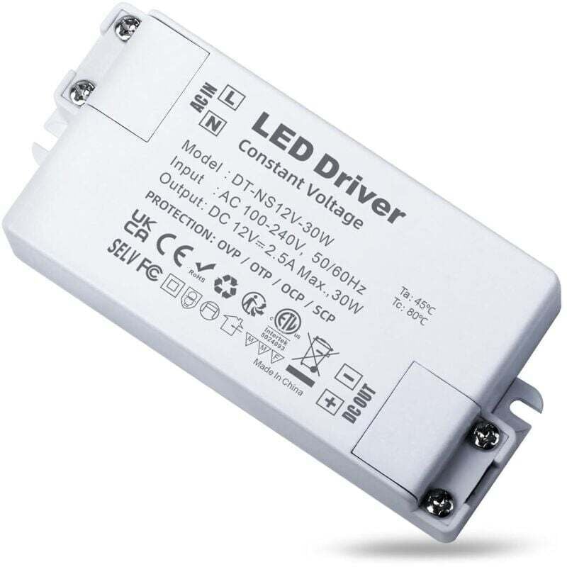 Transformateur LED 12V 30W, 220V à 2.5A, Alimentation Basse Tension AC/DC, Driver de Tension Constante pour Bandes, Lampes et Projecteurs Enfoncés